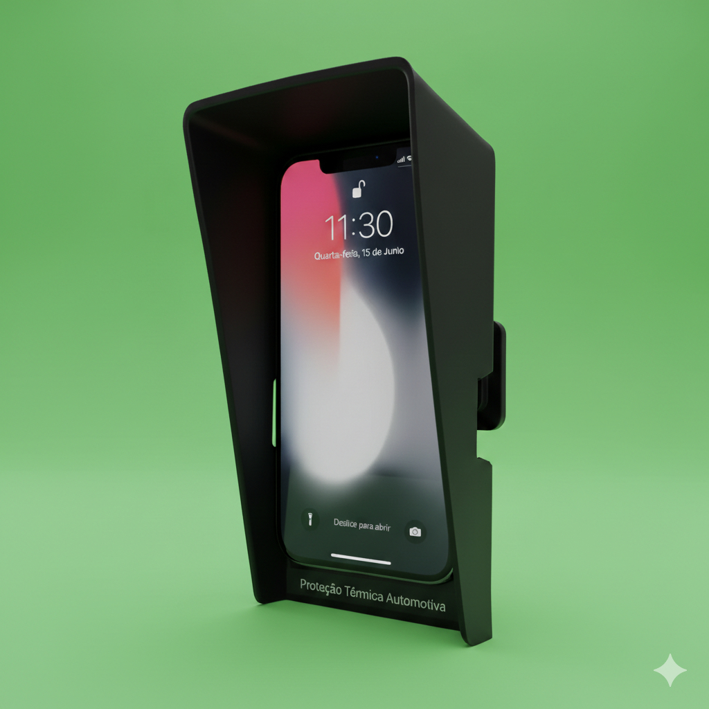 PROTETOR DE TELA PARA SUPORTE DE CELULAR CONTRA SOL E REFLEXOS Dirija com muito mais conforto e segurança utilizando este protetor de tela para celular. Ideal para quem usa GPS no carro, ele reduz reflexos causados pela luz do sol e melhora a visibilidade da tela durante o trajeto. Perfeito para motoristas de aplicativo, entregadores ou qualquer pessoa que utiliza o celular no suporte do veículo. BENEFÍCIOS DO PRODUTO • Diminui o reflexo da luz externa na tela do celular, facilitando a visualização do GPS. • Ajuda a reduzir o aquecimento do aparelho causado pela exposição direta ao sol. • Proporciona mais conforto visual durante o uso do celular no carro. • Estrutura resistente com design discreto que combina com o interior do veículo. CARACTERÍSTICAS DO PRODUTO Cor: Preto Material: Plástico PP de alta resistência Dimensões aproximadas: 18 cm x 9 cm Compatibilidade: Adaptável à maioria dos suportes automotivos OBSERVAÇÕES IMPORTANTES Antes de comprar, confira se a largura total do celular junto com o suporte não ultrapassa 9 cm. Este modelo não é indicado para celulares da linha Plus que utilizam carregamento pela lateral. CONTEÚDO DA EMBALAGEM Protetor de tela para suporte de celular