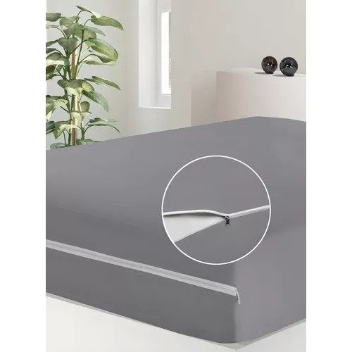 Capa Protetora de Colchão Cinza Para Cama Box Solteiro Casal Queen com Zíper Antiácaro Resistente