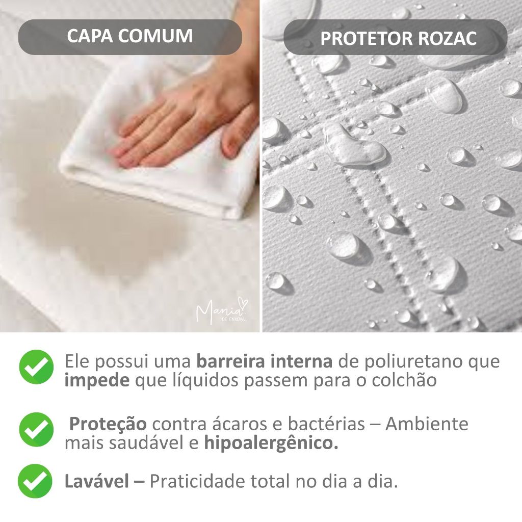 🛏️ Protetor de Colchão Impermeável Rozac – Proteção, conforto e noites mais tranquilas! ✨ O Protetor de Colchão Impermeável Rozac é aquele detalhe que faz toda a diferença no seu dia a dia! 💖 Ele garante proteção total contra líquidos, poeira e impurezas, sem abrir mão do conforto na hora de dormir. Confeccionado com 3 camadas de tecidos de alta qualidade, oferece: ✔️ Resistência e durabilidade ✔️ Toque macio e agradável ✔️ Segurança contra acidentes noturnos Além disso, é antialérgico, ajudando a prevenir alergias causadas por ácaros e outros agentes. Sua camada impermeável é discreta e silenciosa, mantendo a sensação de um tecido macio em contato com a pele 🌸. 👉 Fácil de colocar, com ajuste seguro e prático de lavar (pode ir direto na máquina!). Assim, seu colchão fica sempre protegido, limpo e com vida útil muito maior. ❓ Perguntas Frequentes: 🔹 Faz barulho quando deito? Não! A camada impermeável é silenciosa e super discreta. 🔹 É confortável? Sim! O tecido macio garante conforto total sem sensação plástica. 🔹 Protege contra ácaros e alergias? Com certeza! Ele é antialérgico e contribui para noites mais saudáveis. 🔹 Posso lavar na máquina? Sim! Super prático, basta colocar na máquina para manter sempre limpo e fresquinho.