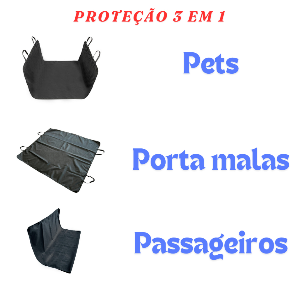 Cansado de toda vez que andar de carro com seu pet, ele sujar seu banco de pelos e outros tipos de sujeira? Apresentamos a vocês a capa protetora de bancos e porta malas! Muito fácil de ser colocada e retirada! Com quatro alças ajustáveis, basta alguns cliques e tudo estará pronto! Prático e rápido! Além de passeios divertidos, também terá muita segurança, pois a capa possui aberturas que possibilitam a utilização do cinto de segurança! Muito resistente, a capa suporta arranhões e é impermeável, ou seja, evitará que seu banco tenha contato com urina e baba de seu pet! A capa pode ser usada de diversas maneiras, além de transportar pets, pode ser usada para proteger banco e porta malas!