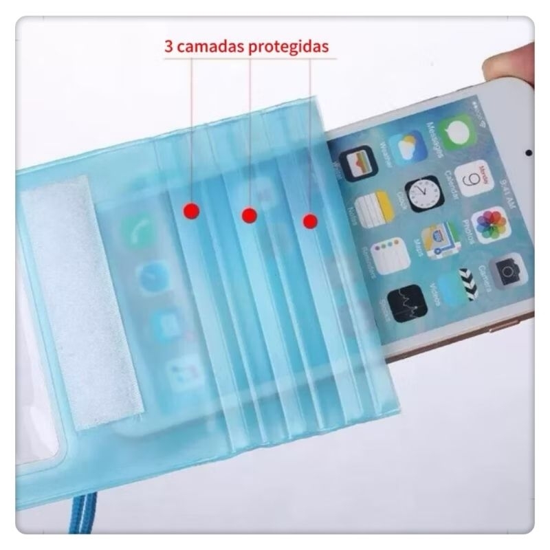 【Bolsa Protetora Impermeável para CelulaR Cores vivas para o verão, proteção total para o seu celular! Destaques do Produto Tripla vedação dobrável: proteção extra contra entrada de água Material em PVC: resistente, leve e durável Transparência dupla face: fotos e vídeos nítidos até na água Este produto a prova d'água é una mercadoria mpecial. Ele passou por testes de segurança antes de sair da fabrica. No entanto, por motivos de segurança antes de asar preencha-o com materiais absorvenes, como toalhas de papel ou tiras de teste profissionais, mergulhe a bolsa impermeável completament em água (por cerca de 10 a 30 minutos) e verifique se ha entrada de água. Coloque objetas de valor dentro dele somente após se certificar de que não há problemas. Caso contrárimpersivel por quaisquer perdas que possam co 2. Evite impactos violentos e mantenha o produto longe de objetos portiagudos para prevenir danos e afetar seu funcionamento. Não utilize em ambientes com altas temperaturas os substâncias corrosivas. O produto não deve ser utilizado em água com temperatura acima de 40 graus Delsius. Não o utilize submersó por mais de 3 3. Após o uso, para evitar o refluxo de água, lembre-se de secar bem a bolsa impermeável e, em seguida, retire o telefone com a abertura da bolsa voltada para baixo 4. Em ambientes dinâmicos, como toboáguas de alta velocidade ou mergulho, não pendure este produto no pescoço para evitar perigo. Tela sensível ao toque: use o celular sem precisar retirar da bolsa Ideal para: praia, piscina, parque aquático, chuva, trilhas e passeios ao ar livre. Bolsa dobrável impermeável de três camadas para celular, especialmente projetada para entregadores, também comporta power banks e telas sensíveis ao toque, capa de chuva universal. à prova d'água, compatível com todos os modelos de celular, vedação tripla, proteção para tela sensível ao toque, ideal para nadadores, ciclistas e mergulhadores.