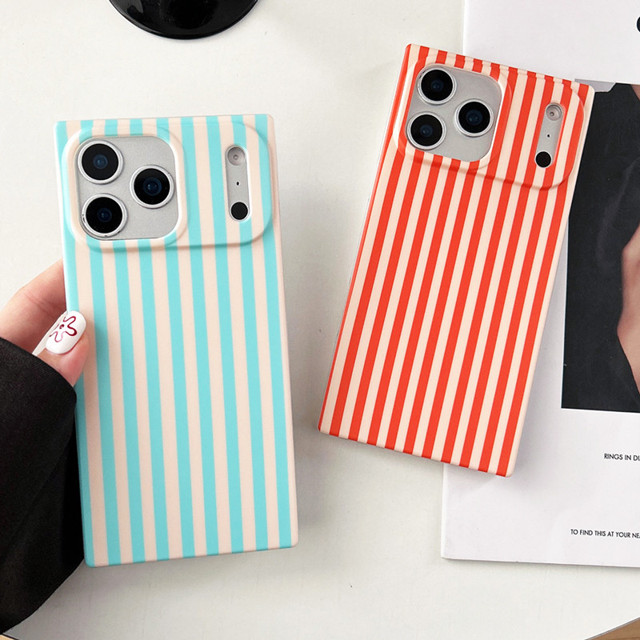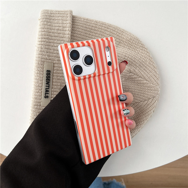Capa Quadrada Listrada Bloqueada Em Cor Azul Laranja Doce Para iPhone 17 16 15 13 14 Pro Max