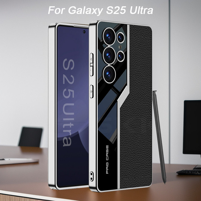 Capa de chapeamento em couro liso para Samsung Galaxy S25 S24 Ultra à prova de choque Capa de borda macia para Galaxy S25 Ultra Cases