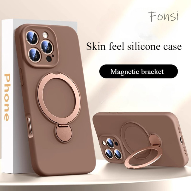 Capa Traseira De Silicone Luxuosa Com Suporte De Metal À Prova De Choque Para iPhone 16 Plus 15 14 13 Pro Max