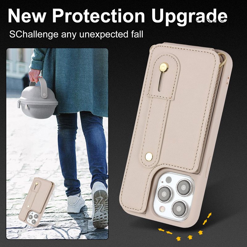 Capa Traseira Luxuosa De Couro PU Com Cartão Solfs Long Stran Case Para iPhone 16 15 14 Plus 13 12 11 Pro Max