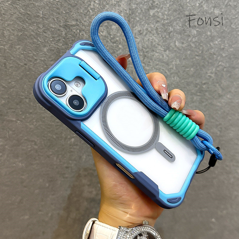 Capa Traseira Transparente De Silicone De Luxo Com Suporte De Câmera Para iPhone 16 15 14 Plus 13 12 Pro Max 11 Alça