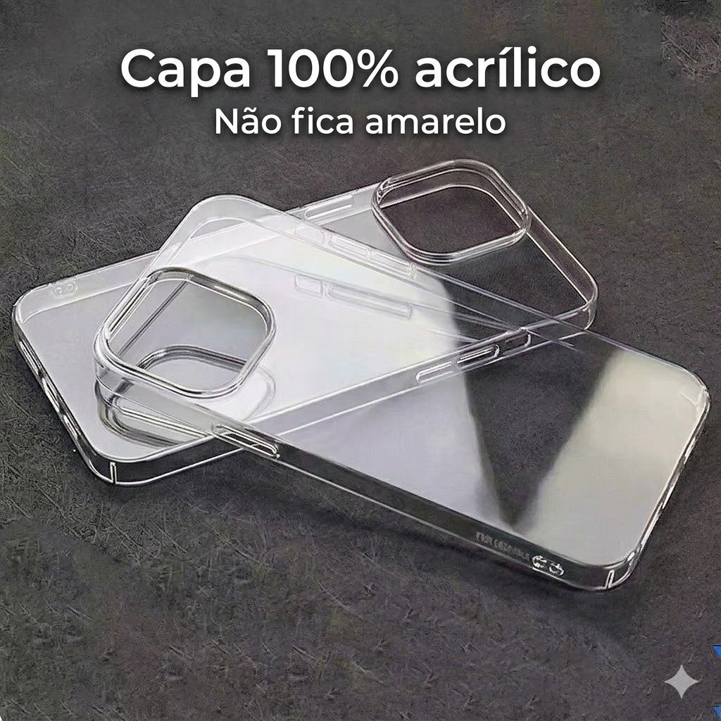 Case Slim Acrílica “casca de ovo” • VÍDEO: iphone utilizando a case 100% acrílica (aberta na câmera) 100% de acrílico (fundo e laterais) - Sensação de que está sem Case - Protege seu aparelho e permite fácil acesso a todos os botões sem remover o case; - Possui uma proteção apenas contra pequenos choques. - Feito de material durável e excelente qualidade; - Encaixa-se perfeitamente em seu aparelho; - Necessário um cuidado maior para evitar quedas **Fotos reais do produto** ATENÇÃO Cuidados no uso: Para limpeza da case indicamos que seja lavada, pois dependendo do tecido utilizado pode arranhar o acrílico. Itens inclusos 01 Case Acrílica