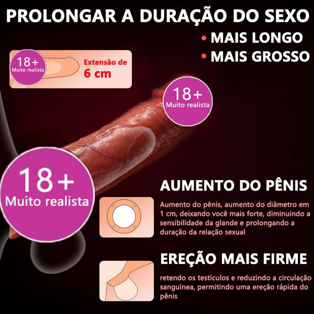 A manga do pênis é adequada para pênis com comprimento de ereção entre 12 a 16 cm. Pode aumentar instantaneamente o comprimento do pênis por 6 cm e a espessura de 1 cm, tornando-o mais forte. CONTEÚDO DA EMBALAGEM Vibrador * 1 Cabo USB * 1 Embalagem secreta * 1 Estenda seu pênis por 6 cm: Esta manga de pênis masculino estende seu pênis por 6 cm, dando-lhe um desempenho mais poderoso.Também em adição, capas mais grossas reduzem A sensibilidade do pênis, permitindo que você estenda seu tempo de experiência sexual.O vibrador embutido no topo do conjunto Pode Estimular com precisão o ponto G feminino, trazendo uma experiência de prazer inigualável para o parceiro. Todo uso o surpreenderá. Aproveite o tempo feliz de duas pessoas gastam juntos e sejam o companheiro perfeito em seu coração. Modos de vibração fortes: Esta manga de pênis apresenta 9 modos de vibração poderosos, cada um projetado para estimular com precisão as áreas mais sensíveis do seu corpo feminino. De toque suave para vibração forte, você pode escolher o nível desejado do prazer, cada modo de comutação trará Tamanho da manga de pênis: Trazendo um prazer mais forte e mais forte e vários orgasmos. Esta manga de pênis é projetada de forma compacta com um comprimento interno de 10 cm e um diâmetro de 4 cm. Feito com Material de alta elasticidade, comprimento do pênis de ajuste perfeito entre 12 A 16 cm quando A ereção. A maioria é importante, pode aumentar instantaneamente o comprimento do O Pênis Por 6cm E 1cm De Diâmetro Para Impacto Mais Forte E Satisfação.Traga Nova Energia E Charisma A Cada Uso, Encantando Seu Parceiro Em Passão Incomparável.Tamanho A Chance E Seja O Super-herói do Seu Parceiro! À prova d'água e fácil de limpar: A manga do pênis é 100% à prova d'água, permitindo que você o Use sem restrição na banho, chuveiro ou em qualquer lugar.Também na adição, seu Design facilita a limpeza rápida, garantindo a higiene e conforto após cada uso.Basta lavar com A qualquer momento sem se preocupar. Instruções de uso: Ideal Para Melhorar a Capacidade Sexual!Basta colocar no pênis de ereção ao usá-lo.Para uma experiência mais confortável, é recomendado usar lubrificante ou umedecer o pênis com água para fazer o processo de uso mais suave.Seu Design inteligente garante que cada etapa seja conveniente Experiência sexual mais forte e satisfatória, trazendo-lhe uma experiência sexual mais forte e íntima. Cuidado com o envio: Prendemos Ótima Importância Para Sua Privacidade.Este Produto Será Enviado em Embalagem Cuidada E Não Mostrará Qualquer Conteúdo Informações Na Embalagem.Produto Foi Embalado Cuidadosamente Em Caixas Pretas Individuais Para Garantir Nenhum Conhecimento O que Há Dentro Da Compre com confiança durante todo o processo.Você pode comprar com confiança, pois respeitamos sua privacidade durante todo o processo.