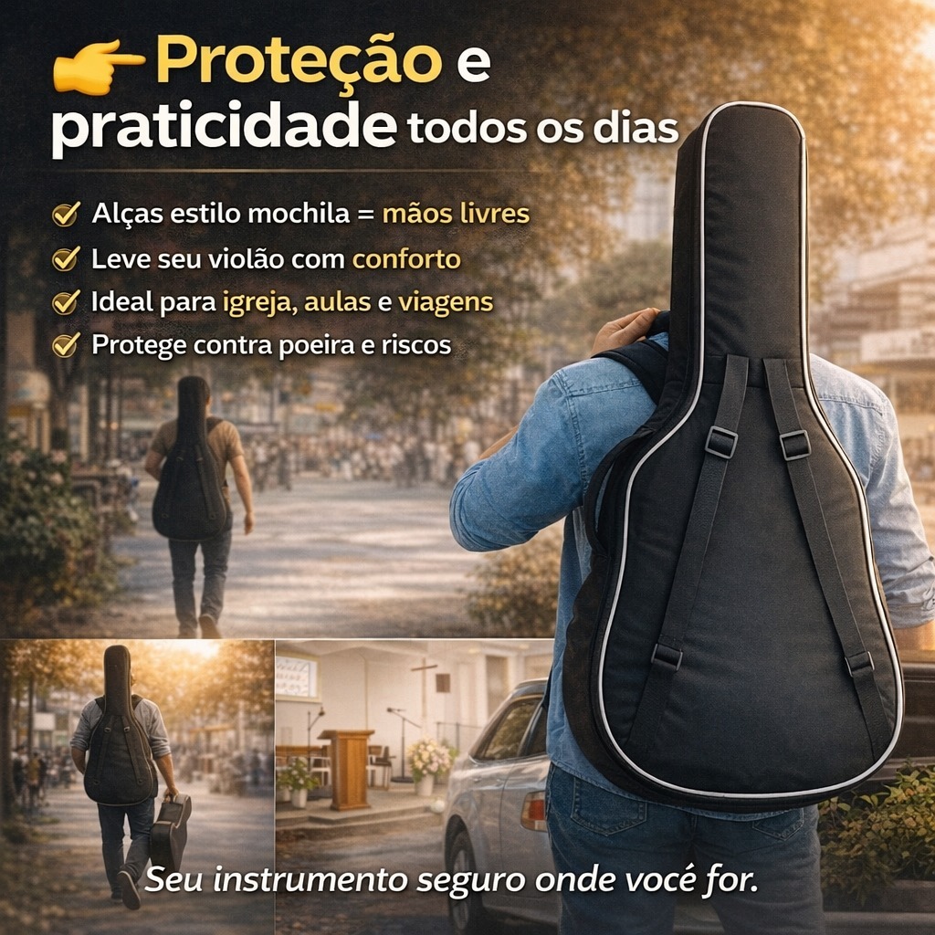| Capa Violão Linha Simples impermeável, com bolso este produto | R$ 35,00 | 10% | 4.8/5 | — |