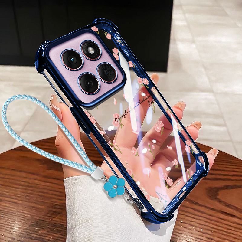 Capa VRQR Para Motorola Moto G56 G86 Flower Print De Telefone Transparente À Prova De Choque Com Corda De Flor