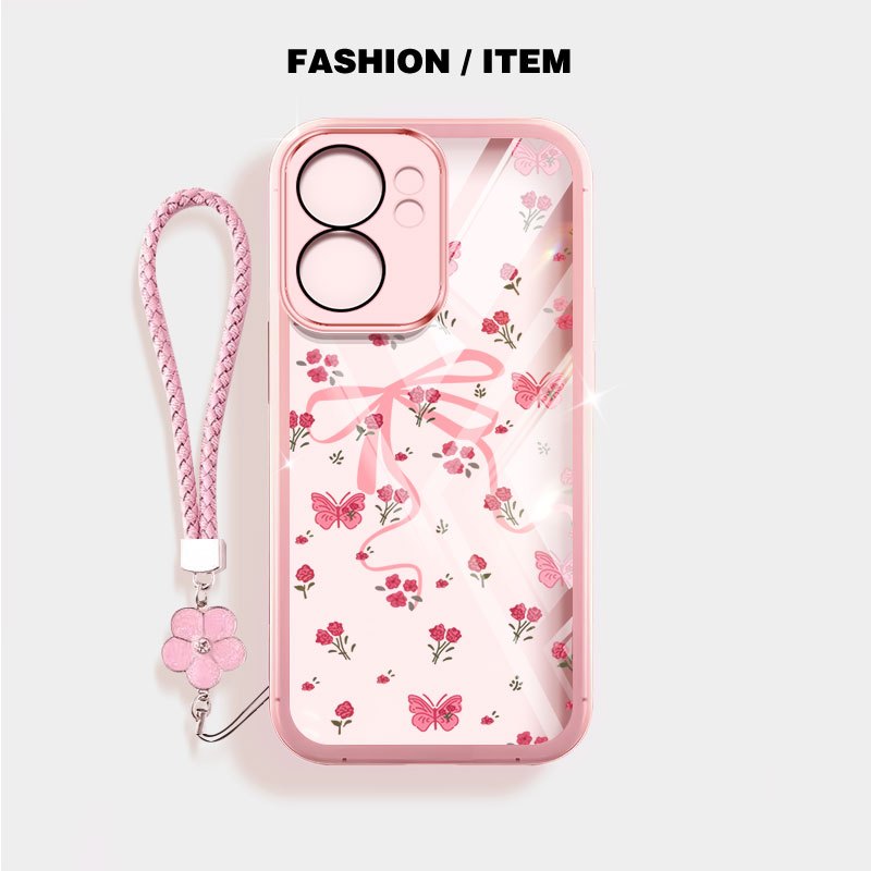 Capa VRQR Para Xiaomi Poco C85 Redmi 15 5G 4G 15C 4G 5G Moda Flor Urso Claro À Prova De Choque Caso De Telefone Com Cord
