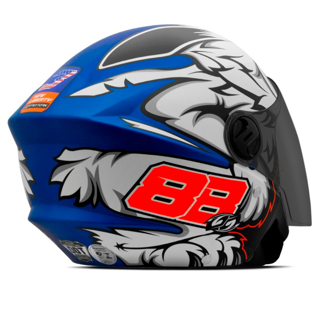 # Auto Equip # Seja bem-vindo(a)!!! --- Descrição: Capacete Moto Pro Tork Aberto New Liberty 3 Three GP 88 - Pro Tork Este capacete chega para tomar conta das ruas de todo o Brasil! O Capacete Pro Tork New Liberty 3 GP 88 conta com um grafismo super moderno e atraente, que aliado à sua construção impecável, formam o capacete perfeito para você motociclista que adora pilotar sem perder aquela sensação única de liberdade que apenas um capacete aberto pode oferecer. Dicas: - É importante escolher um capacete bem justo, pois a tendência é que ele se ajuste com o uso. Portanto, se a sua medida é 56 ou 57 cm, escolha um 56 sem medo. Como fazer a limpeza: - No caso de capacetes sem forração removível, o indicado é utilizar um pano úmido com detergente neutro e passá-lo nas partes internas, depois deixar secar na sombra. Se você deixar secá-lo no sol, a alta temperatura pode danificar os materiais internos do capacete e, por consequência, fazê-lo perder suas propriedades de proteção. IMPORTANTE: Não use produtos em embalagens com aerosol, pois contêm substâncias que danificam os orifícios de ventilação e o visor. Especificações Técnicas - Marca: Pro Tork; - Tamanho: 56, 58 ou 60; - Modelo: New Liberty 3 Three GP 88; - Modelo: Aberto; - Design americano; - Pintura fosco; - Viseira cristal de 2mm; - Casco fabricado em ABS injetado; - Revestimento de proteção confeccionado em EPS; - Cinta jugular confeccionada com nylon; - Sistema de fecho micrométrico; - Aprovado pelo INMETRO. Características da Viseira - Retirar proteção da viseira antes de usá-la; - Fabricado em policarbonato; - Espessura de 2mm; - Fabricante: Pro Tork. Conteúdo da Embalagem - 01 Capacete Moto Pro Tork Aberto New Liberty 3 Three GP 88 - Pro Tork Importante - Garantia de 03 meses; - Pedidos aprovados até 12h00 de segunda a sexta será enviada no mesmo dia; - Enviamos em até 24h úteis; - A embalagem pode variar de acordo com o estoque do fabricante; - Imagens meramente ilustrativas; - A cor do produto pode variar de acordo com a tela do seu smartphone ou computador; - Utilize o campo de "Perguntas e respostas" e esclareça suas dúvidas com nosso suporte técnico.