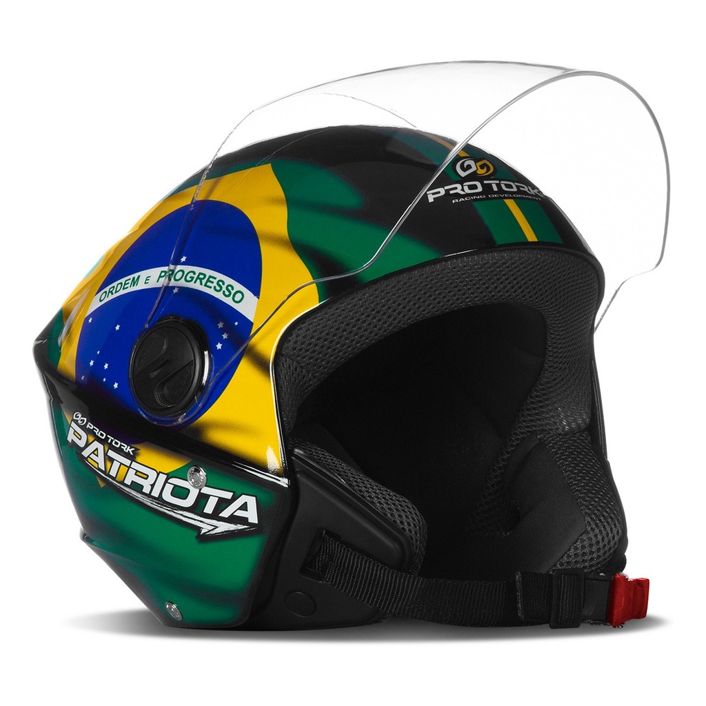 # Auto Equip # Bem vindo! * Produtos de Qualidade * Postagens até 24h * Pagamento facilitado Descrição Capacete Moto Pro Tork Aberto New Liberty 3 Three Patriota - Pro Tork: Para os amantes e defensores da Nação nós temos os capacetes Pro Tork Patriota, uma linha completa com diversos modelos para você escolher: entre eles está o Capacete New Liberty 3, que traz diversos benefícios como sua forração extremamente confortável e o casco super leve. Garanta já o seu e mostre a todos seu amor pela Pátria! Dicas: - É importante escolher um capacete bem justo, pois a tendência é que ele se ajuste com o uso. Portanto, se a sua medida é 56 ou 57 cm, escolha um 56 sem medo. Como fazer a limpeza: - No caso de capacetes sem forração removível, o indicado é utilizar um pano úmido com detergente neutro e passá-lo nas partes internas, depois deixar secar na sombra. Se você deixar secá-lo no sol, a alta temperatura pode danificar os materiais internos do capacete e, por consequência, fazê-lo perder suas propriedades de proteção. IMPORTANTE: Não use produtos em embalagens com aerosol, pois contêm substâncias que danificam os orifícios de ventilação e o visor. Especificações Técnicas: - Marca: Pro Tork - Modelo: New Liberty 3 Three Patriota - Modelo: Aberto - Viseira cristal de 2mm; - Casco fabricado em ABS injetado; - Revestimento de proteção confeccionado em EPS; - Cinta jugular confeccionada com nylon; - Sistema de fecho micrométrico; - Selo INMETRO; Características da Viseira: - Retirar proteção da viseira antes de usá-la; - Fabricado em policarbonato; - Espessura de 2mm; - Fabricante: Pro Tork. Conteúdo da Embalagem: - 01 Capacete Importante: Garantia de 3 meses. A Auto Equip recomenda que a instalação seja feita por profissional especializado e não se responsabiliza pelo mau uso do produto.
