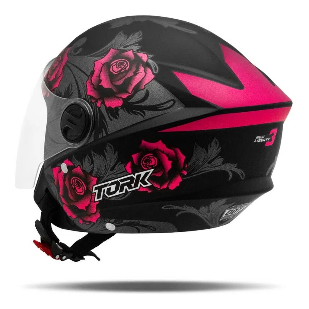 Capacete Aberto Moto New Liberty 3 Flowers Rosa Pro Tork Tamanho 58 Inmetro