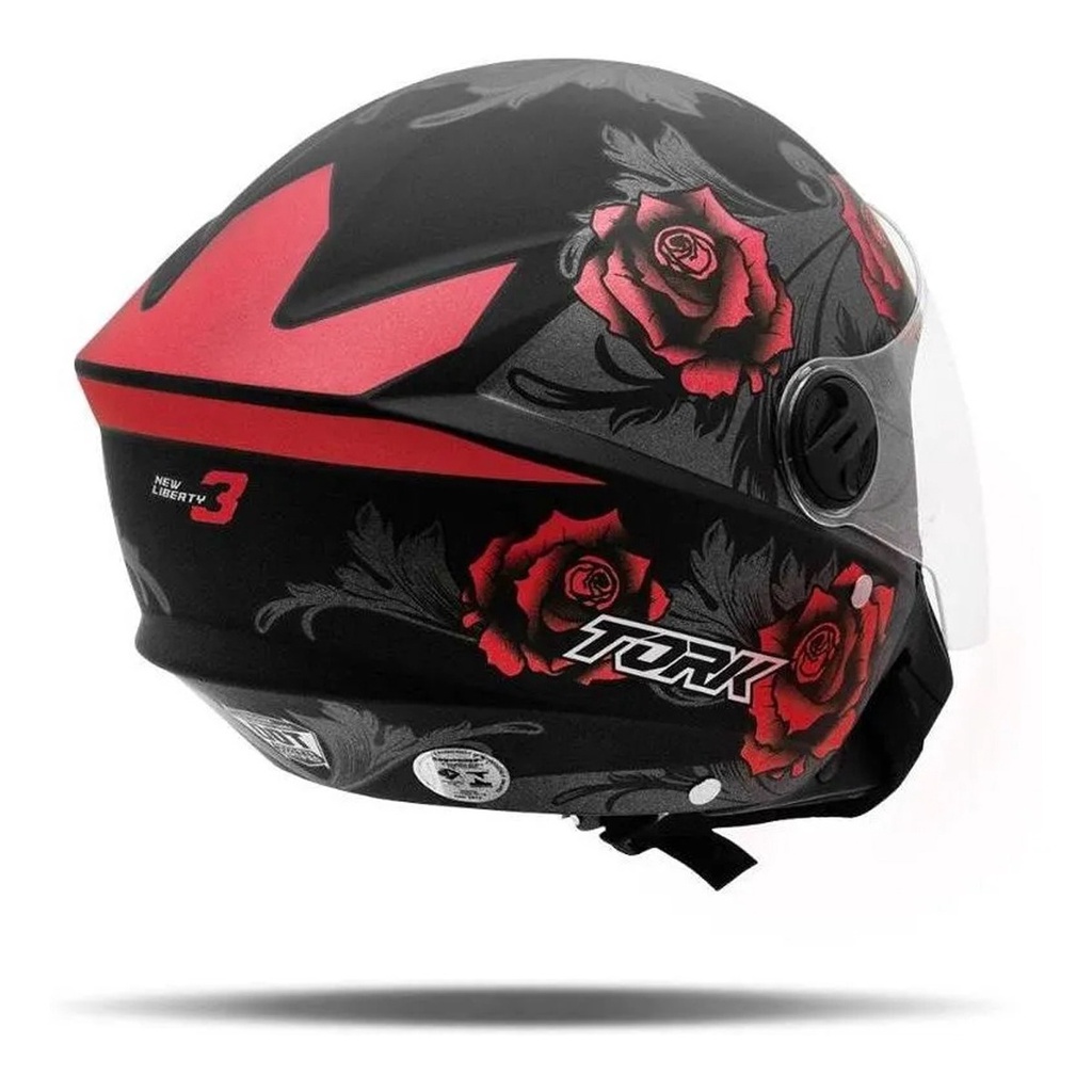Capacete Aberto Moto New Liberty 3 Flowers Vermelha Pro Tork Tam. 56