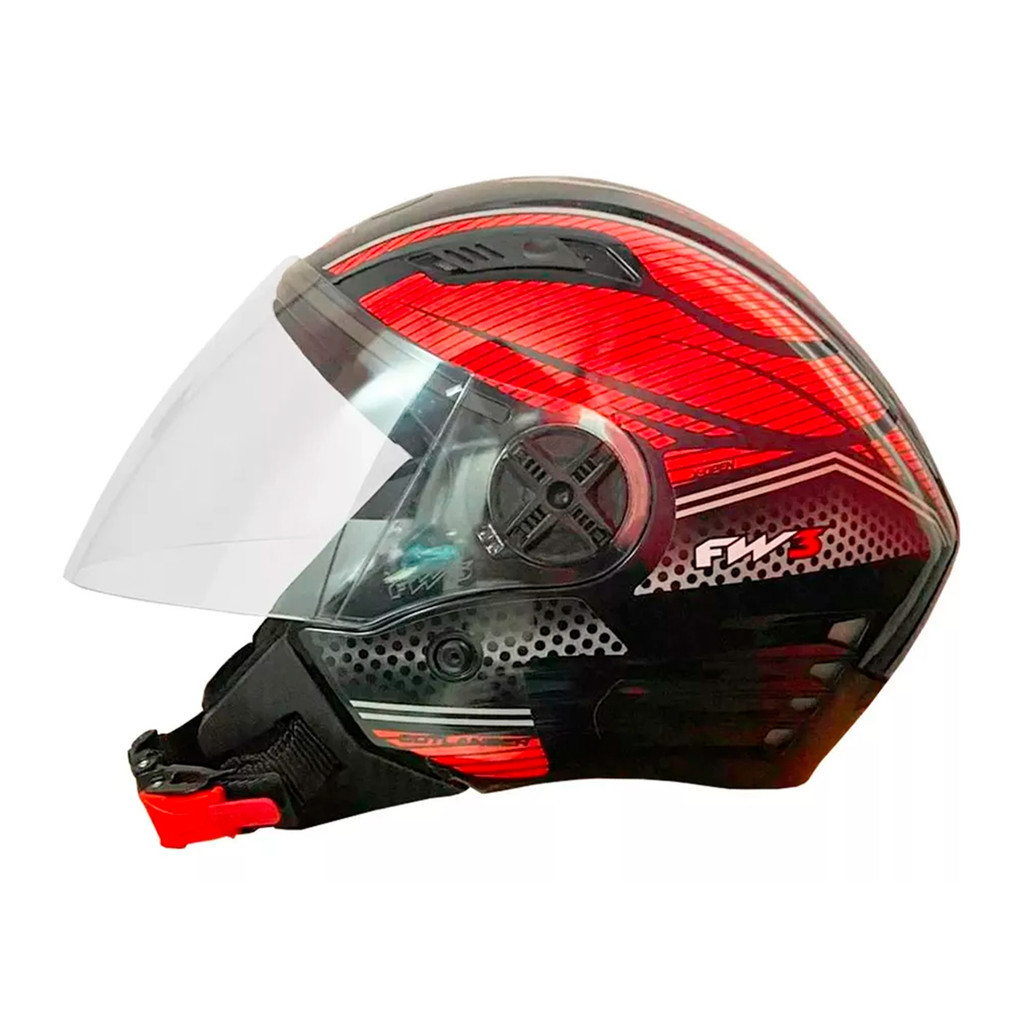 Capacete Aberto X Open Preto Com Vermelho Rosa Ou Azul FW3 Diversos Tamanhos E Viseira Transparente