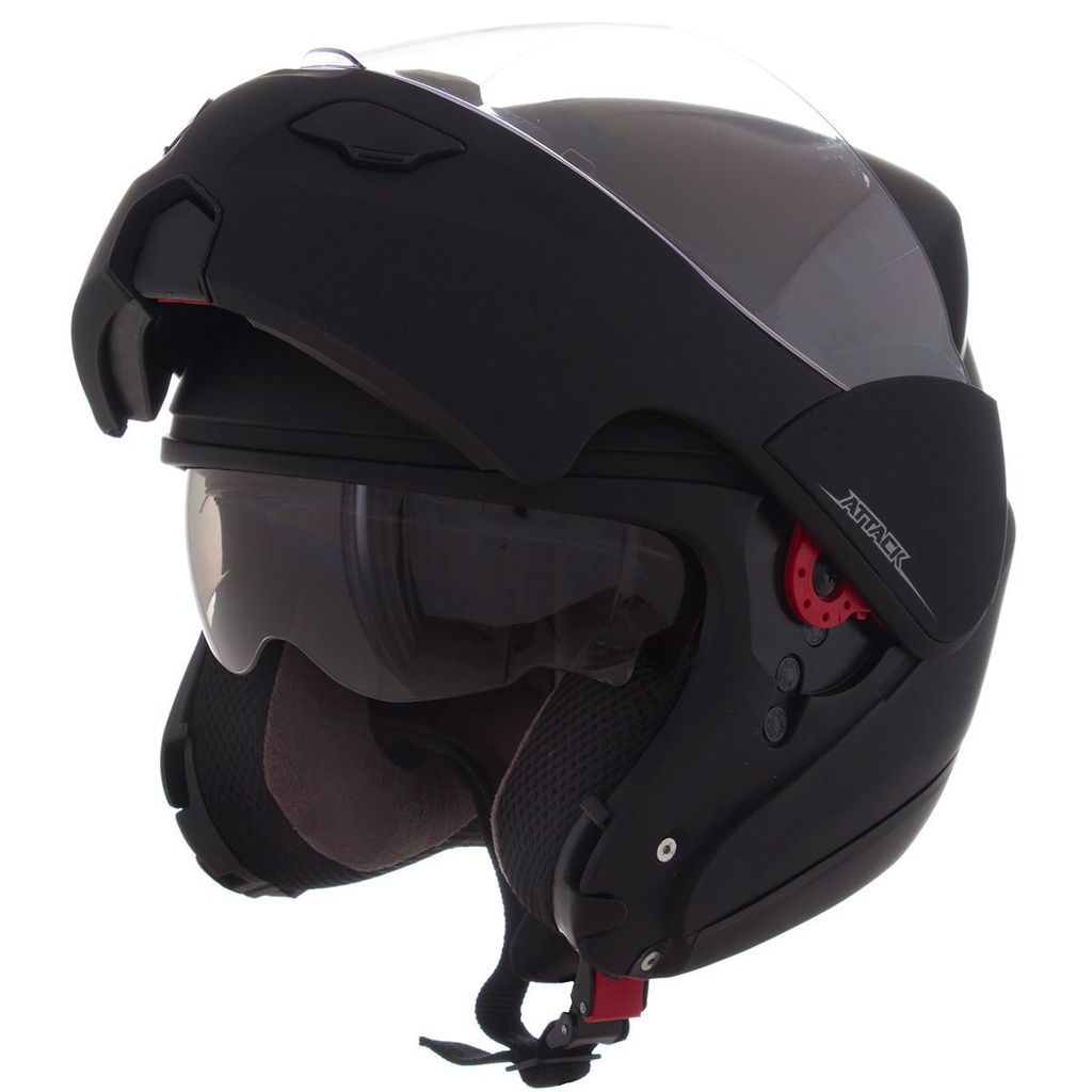 O Capacete Robocop Escamoteável Pro Tork Attack Solid permite que seu conjunto frontal seja aberto de duas formas: parcialmente, levantando a viseira, ou totalmente, através do acionamento de um único botão central, que move todo o conjunto frontal para cima, tornando-se um capacete aberto. Especificações: - Modelo: Attack Solid; - Cores disponíveis: Azul, Azul Escuro, Branco, Preto Fosco, Vermelho; - Tamanhos disponíveis: 56, 58, 60 e 62; - Capacete fabricado em ABS com revestimento de proteção em EPS; - Forro em camurça antialérgico e antimofo; - Cinta jugular com feixe de engate rápido micrométrico; - Possui 2 viseiras, sendo uma em cristal e outra fumê; - Produto resistente e de qualidade; - Entrada de ar frontal; - Certificado do INMETRO; - Marca: Pro Tork. Dicas: - É importante escolher um capacete bem justo, pois a tendência é que ele se ajuste com o uso. Portanto, se a sua medida é 58 ou 59 cm, escolha um 58 sem medo. Como fazer a limpeza: - No caso de capacetes sem forração removível, o indicado é utilizar um pano úmido com detergente neutro e passá-lo nas partes internas, depois deixar secar na sombra. Se você deixar secá-lo no sol, a alta temperatura pode danificar os materiais internos do capacete e, por consequência, fazê-lo perder suas propriedades de proteção. IMPORTANTE: Não use produtos em embalagens com aerosol, pois contêm substâncias que danificam os orifícios de ventilação e o visor.