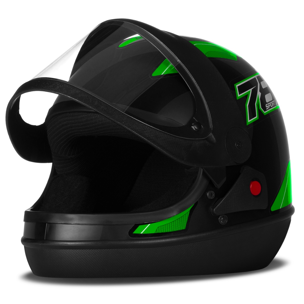 O Capacete Pro Tork New Sport Moto 788 une praticidade, conforto e design em um único capacete. O modelo traz grandes inovações, como seu botão lateral, que com um único toque levanta toda a viseira. Foi desenvolvido especialmente para condutores de passageiros mais exigentes, com materiais de alta qualidade e resistência, fornecendo maior conforto e segurança. Especificações: - Modelo: Sport Moto 788; - Cores disponíveis: Amarelo, Azul, Branco, Laranja, Rosa, Verde, Vermelho; - Tamanhos disponíveis: 56, 58 e 60; - Casco fabricado em ABS; - Isopor interno conta com aletas para absorção e dissipação de choque; - Viseira transparente com 2mm de espessura, fabricada em policarbonato; - Sistema automático para abertura da viseira, trazendo facilidade de uso; - Cinta jugular com sistema de fecho micrométrico; - Forro confeccionado em nylon pluma duplado antialérgico; - Aprovado pelo INMETRO; - Acompanha adesivo refletivo; - Peso aproximado: 1,040 g; - Marca: Pro Tork. Dicas: - É importante escolher um capacete bem justo, pois a tendência é que ele se ajuste com o uso. Portanto, se a sua medida é 56 ou 57 cm, escolha um 56 sem medo. Como fazer a limpeza: - No caso de capacetes sem forração removível, o indicado é utilizar um pano úmido com detergente neutro e passá-lo nas partes internas, depois deixar secar na sombra. Se você deixar secá-lo no sol, a alta temperatura pode danificar os materiais internos do capacete e, por consequência, fazê-lo perder suas propriedades de proteção. IMPORTANTE: Não use produtos em embalagens com aerosol, pois contêm substâncias que danificam os orifícios de ventilação e o visor.