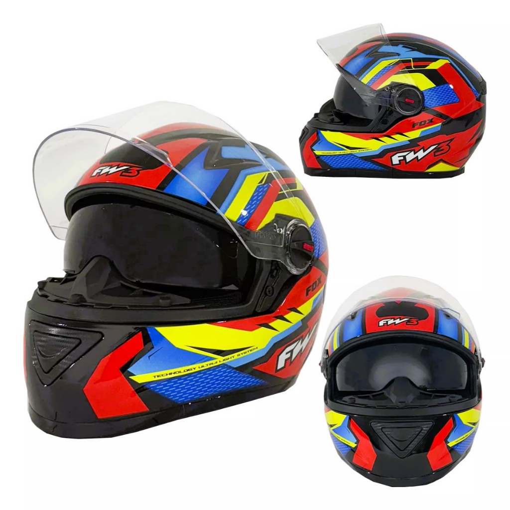Capacete Fechado Fw3 Gtx Fox Óculos + Narigueira Cores Masculino Feminino