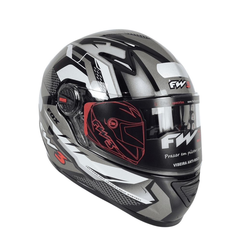 Capacete Fechado Fw3 Gtn Fox Masculino Feminino + Narigueira Com design esportivo e diferenciado, o capacete FW3 é perfeito para todo motociclista. Leve, estiloso e confortável, este moderno capacete vem com entrada e saída de ar, é fabricado em ABS super resistente e possui certificado de segurança. O melhor para você motociclista andar por aí com muita segurança, conforto e estilo! Características: - Modelo: GTX FOX - Tamanho: 56/ 58/ 60 - Forro Removível - Casco em ABS Resistente - Abertura em 2 Estágios - Viseira Transparente em Policarbonato 2.5 mm - Óculos interno fume. - Fitas autocolantes internas para Fixar a Bochecha ao Casco - Com Entrada e Saída de Ar - Com Narigueira - Produto Certificado pelo INMETRO Conteúdo da Embalagem: - 01 Capacete Garantia de 90 dias contra defeito de fabricação.