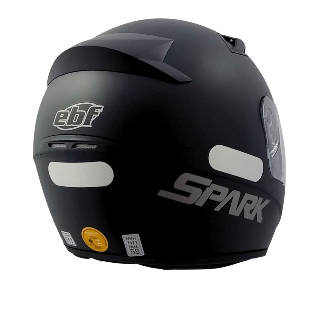 CAPACETE EBF FECHADO MODELO SPARK Principais características: - Viseira transparente em policarbonato, com proteção anti-risco; - Casco aerodinâmico em resina termoplástica; - Cinta jugular com engate micrométrico; - Sistema de troca rápida da viseira; - Viseira cristal de 2 milímetros; - Forro removível e lavável; - Entradas e saídas de ar; - Produto 100% nacional; - Aplicação: ON ROAD; - Fabricante: EBF Capacetes;