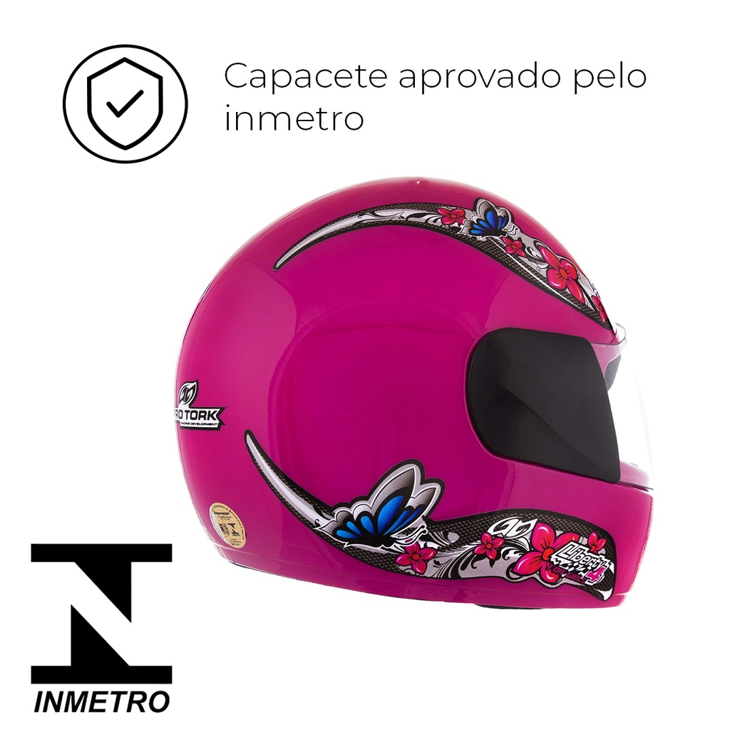Capacete Feminino Rosa Tamanho 60 Pro Tork Viseira Cristal Casco Em ABS Cinta Jugular Revestido EPS