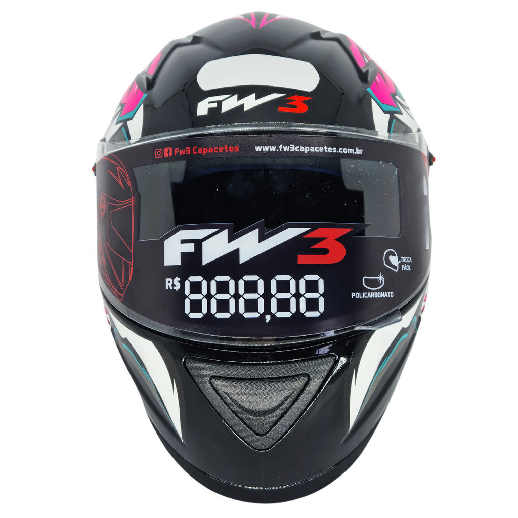 Bem-Vindo(a) a AT4U! Capacete FW3 Modelo GTN EAGLE Rosa com Azul Com design esportivo e diferenciado, o capacete FW3 é perfeito para todos os motociclistas. Leve, estiloso e confortável, este moderno capacete vem com entrada e saída de ar, é fabricado em ABS super resistente e possui certificado de segurança. O melhor para você motociclista andar por aí com muita segurança, conforto e estilo! Capacetes da FW3 são projetados para lhe oferecer uma experiência inesquecível em cada um dos seus trajetos. Seus capacetes possuem uma estrutura compacta e se adapta perfeitamente ao condutor, preservando ao máximo sua segurança e garantindo trajetos confortáveis e divertidos. Maior conforto e segurança no seu andar! *ANTES DE EFETUAR SUA COMPRA, SELECIONE COR E TAMANHO DESEJADO.* Tamanhos Disponíveis: - 56 (Medidas da cabeça entre 55-56 cm); - 58 (Medidas da cabeça entre 57-58 cm); - 60 (Medidas da cabeça entre 59-60 cm). Características: - Cor: Rosa com Azul; - Modelo: GTN EAGLE; - Casco em ABS; - Viseira transparente de policarbonato 2,0 mm, podendo ser removida; - Forração em camurça Jet Black 6 mm (Removível); - Entrada e saída de ar; - Reparo com trava de viseira; - Com narigueira; - Selo Inmetro; Conteúdo da Embalagem: - 01 Capacete FW3 Modelo GTN EAGLE Rosa com Azul. IMPORTANTE: *Postagem em até 24h.* *Entrega Garantida.* *Produtos Originais e Certificados.* *COMPRE COM SEGURANÇA.* *Tire suas dúvidas via chat com nossos especialistas.*