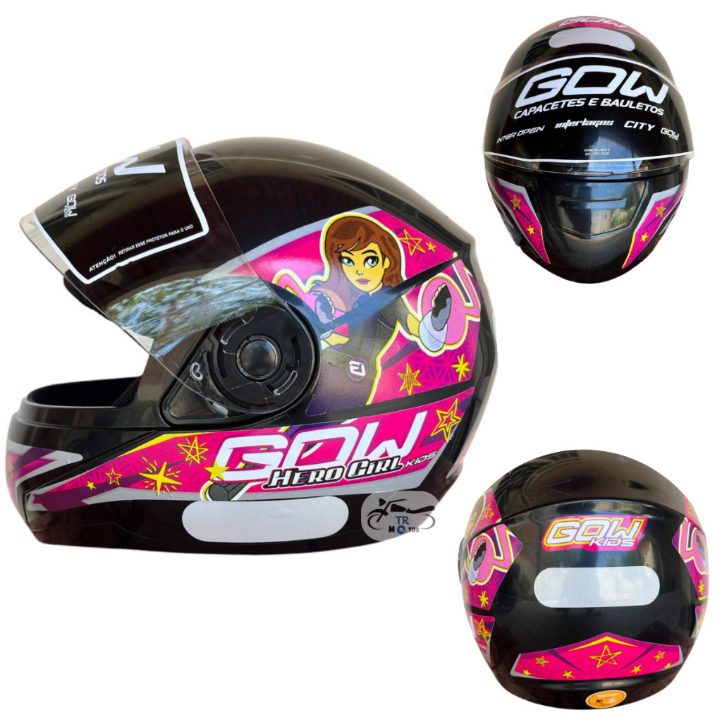 Capacete Infantil Gow Kids Tamanho 54 Cores Rosa/Vermelho/Verde/Preto Com Rosa