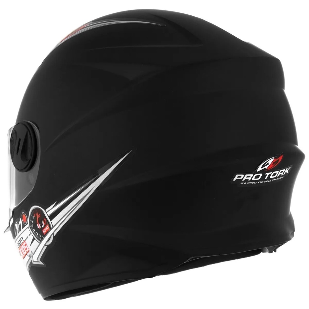 * Imagens meramente ilustrativas * Produto comercializado com viseira cristal (transparente) * Produto certificado pelo Inmetro * Garantia de 90 dias contra defeito de fabricação. Capacete Fechado Pro Tork Liberty Four Kids Infantil Se seu filho sempre te acompanha sobre duas rodas, ele deve estar protegido com um Capacete Fechado feito com qualidade para garantir máxima segurança. Por isso, escolha esse modelo infantil projetado pela Pro Tork. Com casco confeccio