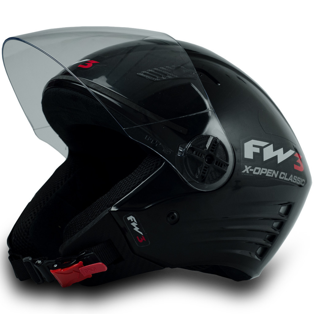 # Auto Equip # Seja Bem-Vindo(a)!!! --- Descrição Capacete Aberto X Open Classic Preto Brilhante - FW3: Com design esportivo e diferenciado, o capacete FW3 é perfeito para todo motociclista. Leve, estiloso e confortável, este moderno capacete vem com entrada e saída de ar, é fabricado em ABS super resistente e possui certificado de segurança. O melhor para você motociclista andar por aí com muita segurança, conforto e estilo! Especificações Técnicas: - Modelo: X Open Classic - Cor: Preto Brilhante - Tamanho: 56 - Casco em ABS Resistente - Abertura em 5 Estágios - Viseira Transparente em Policarbonato 2.0 mm - Forro Removível - Com Entrada e Saída de Ar - Peso: 1,180 kg - Produto Certificado pelo INMETRO Conteúdo da Embalagem: - 01 Capacete Importante - Garantia de 03 meses; - Pedidos aprovados até 12h00 de segunda a sexta será enviada no mesmo dia; - Enviamos em até 24h úteis; - Utilize o campo de "Perguntas e respostas" e esclareça suas dúvidas com nosso suporte técnico.