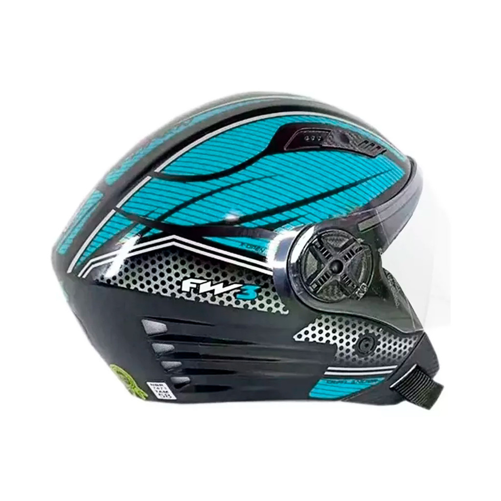 # Auto Equip # Seja Bem-Vindo(a)!!! --- Descrição Capacete Aberto X Open Preto e Azul - FW3: Com design esportivo e diferenciado, o capacete FW3 é perfeito para todo motociclista. Leve, estiloso e confortável, este moderno capacete vem com entrada e saída de ar, é fabricado em ABS super resistente e possui certificado de segurança. O melhor para você motociclista andar por aí com muita segurança, conforto e estilo! Especificações Técnicas: - Modelo: X Open - Cor: Preto e Azul - Tamanho: 56 - Casco em ABS Resistente - Abertura em 5 Estágios - Viseira Transparente em Policarbonato 2.0 mm - Forro Removível - Com Entrada e Saída de Ar - Peso: 1,180 kg - Produto Certificado pelo INMETRO Conteúdo da Embalagem: - 01 Capacete Importante - Garantia de 03 meses; - Pedidos aprovados até 12h00 de segunda a sexta será enviada no mesmo dia; - Enviamos em até 24h úteis; - Utilize o campo de "Perguntas e respostas" e esclareça suas dúvidas com nosso suporte técnico.