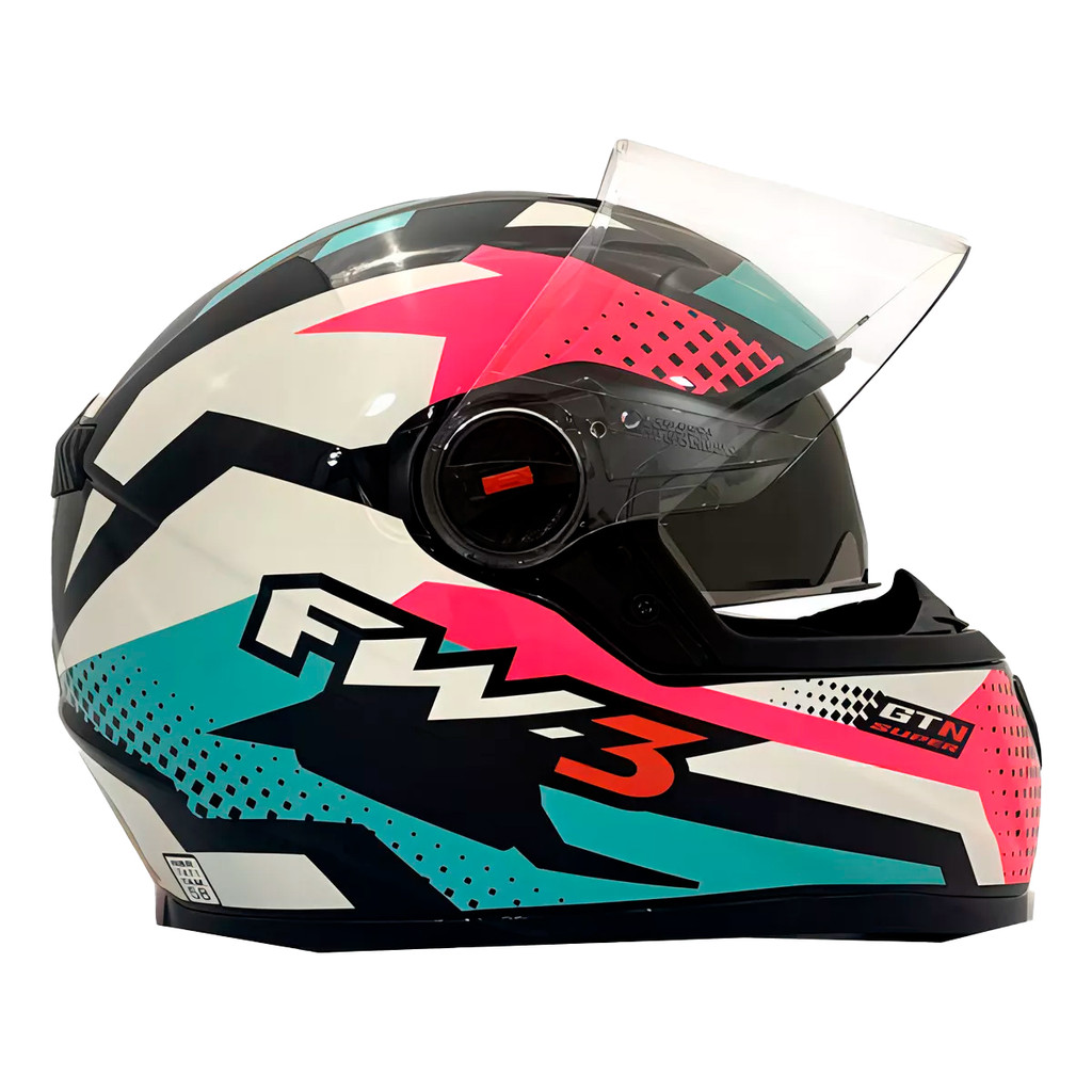 # Auto Equip # Seja bem-vindo(a)!!! --- Descrição: Capacete Moto Fechado GTX Super Azul/Rosa/Branco - FW3 Os produtos fabricados pela FW3 são caracterizados por uma boa relação custo-benefício, graças à combinação de conforto, leveza e design impressionante. Cada capacete garante segurança devido à alta tecnologia aplicada nos processos de fabricação, bem como um estilo único que permitirá que você se destaque em cada andar. Maior conforto e segurança no seu andar Este capacete integral garante a máxima segurança, pois cobre desde o queixo até a nuca, para que a cabeça fique totalmente protegida. Rigidez e segurança É feito com materiais de primeira qualidade que absorvem a energia e lhe conferem maior rigidez. No caso de um impacto, ele lhe dará a proteção que você precisa, amortecendo o golpe em um único ponto. Baixos impactos Seu material interior de eps é acolchoado e elástico, permitindo maior amortecimento e absorção do impacto quando o capacete pára. Características Gerais: - Casco em ABS preto e colorido; - Tamanho: 60; - Forro removível com tecido camurça; - Trava da visiera com botao vermelho; - Cinta jugular com feixe micrométrico; - Narigueira; - Viseira 2,5 mm em policarbonato; - Entrada de ar; - Sistema de reparo, fácil remoção da viseira; Conteúdo da Embalagem: - 01 Capacete Moto Fechado GTX Super Azul/Rosa/Branco - FW3 Importante - Garantia de 03 meses; - Pedidos aprovados até 12h00 de segunda a sexta será enviada no mesmo dia; - Enviamos em até 24h úteis; - A embalagem pode variar de acordo com o estoque do fabricante; - Imagens meramente ilustrativas; - A cor do produto pode variar de acordo com a tela do seu smartphone ou computador; - Utilize o campo de "Perguntas e respostas" e esclareça suas dúvidas com nosso suporte técnico.