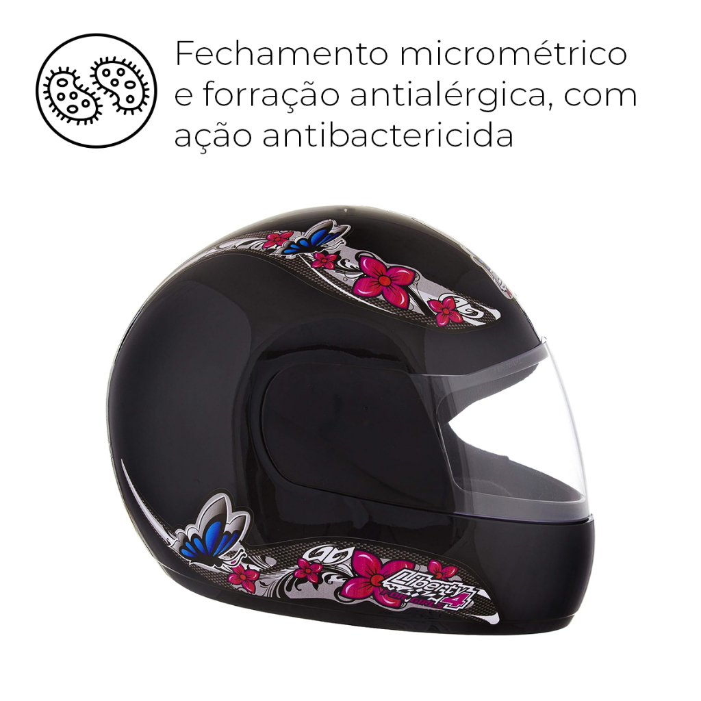 Capacete Moto Fechado Liberty Four For Girls Preto Viseira Cristal Inmetro Tamanho 56 - Pro Tork
