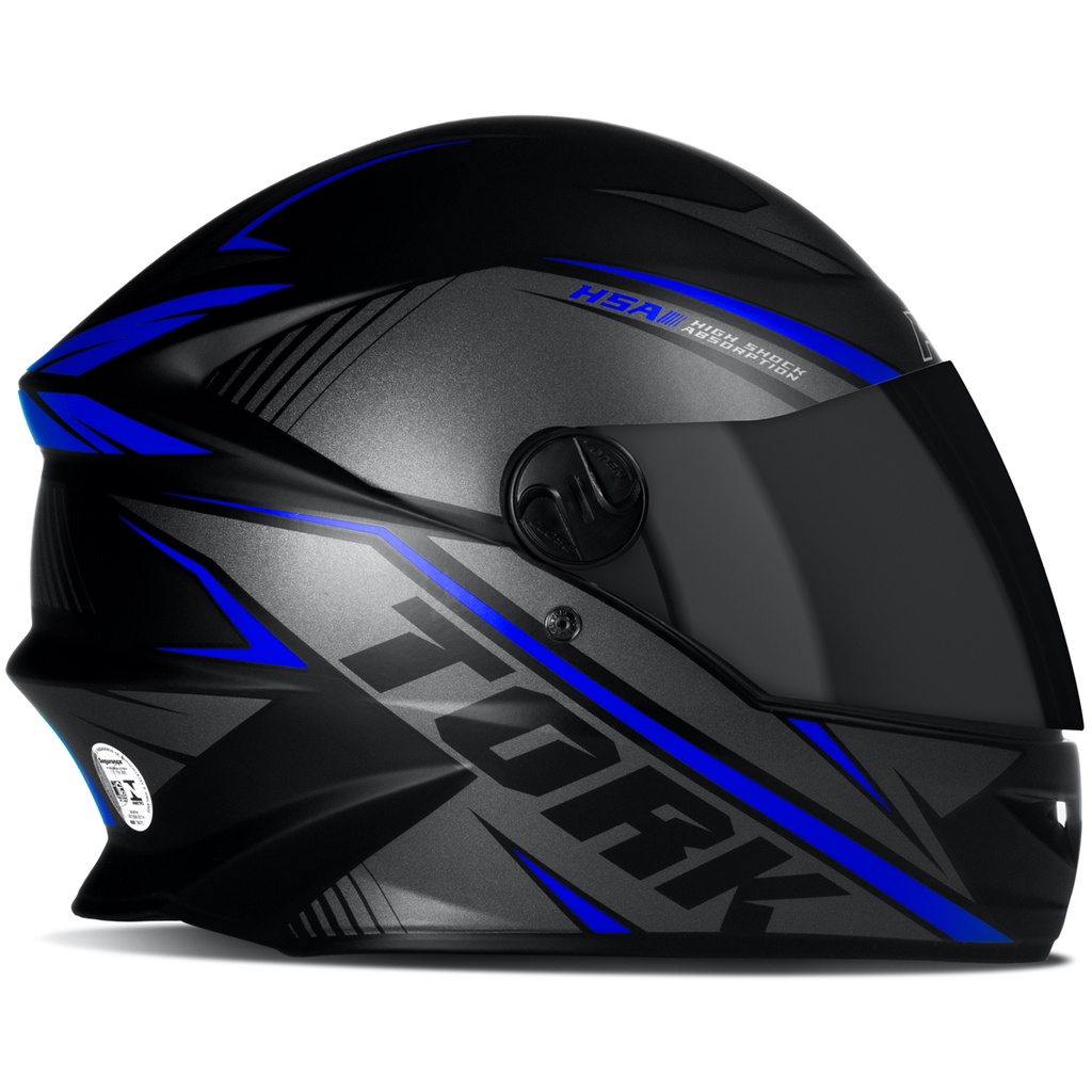 Capacete Moto Fechado R8 Azul/Cinza/Preto Viseira Fumê Inmetro Tamanho 56 58 60 - Pro Tork