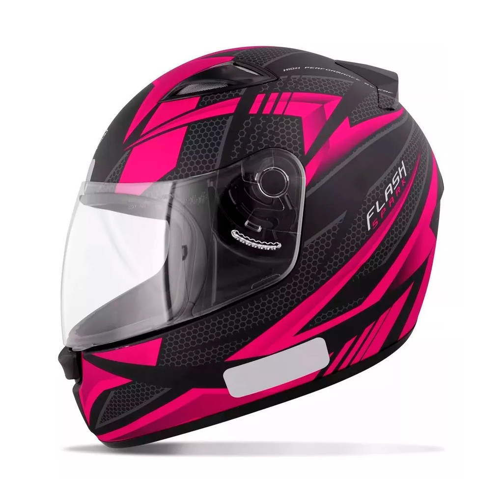 Capacete Moto Fechado Spark Flash Viseira Cristal Preto Fosco c/ Rosa Inmetro Tamanho 56 - EBF