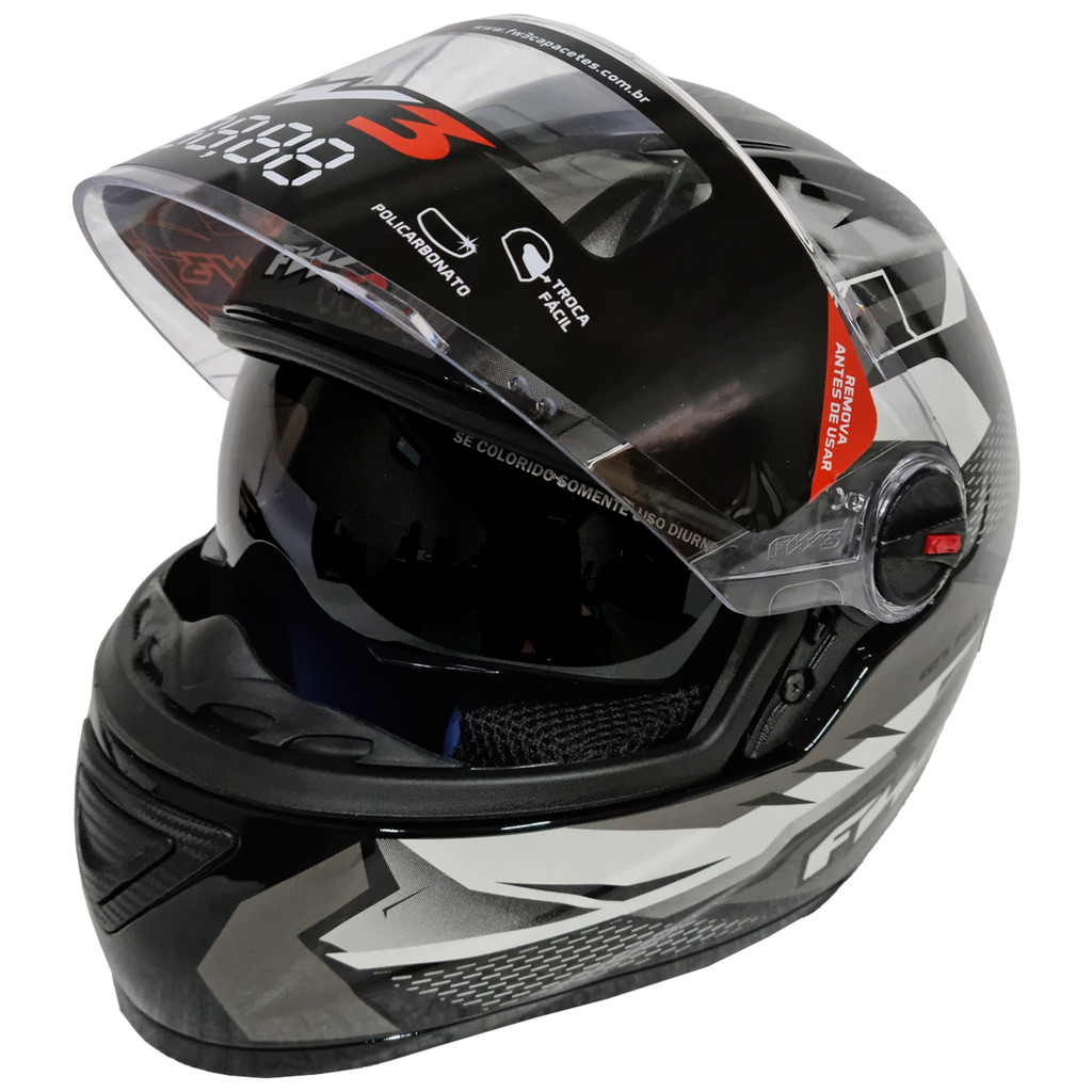 Capacete Moto Fw3 Gtx Fox Grafite Oculos Interno Top + Viseira Cromada FW3