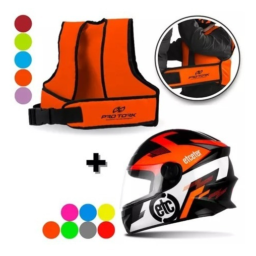 ATENÇÃO: ATENTE-SE A COR NO ATO DA COMPRA! O KIT É COMPOSTO POR: 1 UNIDADE DO CAPACETE ETCETER KIDS NUMERO 54 E 1 UNIDADE DO COLETE CINTO INFANTIL PARA GARUPA MOTO. Bem vindos a Loja, segurança, rapidez e compromisso com o cliente, esses são os lemas da loja! A melhor loja especializada em moto peças do mercado, com um atendimento personalizado e ágil. Emissão de Nota Fiscal para todos os produtos e garantia para todas as compras. O Colete cinto infantil Pro Tork para Transporte vem para oferecer maior segurança e conforto ao seu pequeno enquanto vocês rodam juntos! Fabricado em poliéster de alta qualidade, o colete é recomendado para crianças de 7 a 12 anos. Especificações: - Tamanho único; - Fabricado em Poliéster; - Tamanho único; - Disponível nas cores: Rosa, laranja, amarelo, azul e vermelho; Dimensões: - Altura 30 cm - Largura costas 43 cm - 2 alças de 26x8 - Possui um engate 4 cm com uma fita gorgorão de 80 cm de comprimento para extensão. Conheça o Capacete Infantil Etceter Kids, produto exclusivo da LOJA. Suas linhas aerodinâmicas somadas ao aerofólio tornam esse capacete um sinônimo estabilidade para pilotar nas estradas. Além de seu grafismo super atraente, este capacete também conta com entradas de ar (frontal e superior) ajustáveis, com acionamento rápido durante a pilotagem. Características: - Modelo: Infantil; - Marca: Etceter; - Tamanhos disponíveis: 54; - Novas cores e grafismos, muito mais agressivos e atraentes; - Nova forração termoformada, muito mais confortável; - Novo sistema de ventilação, mais moderno e prático; - Casco injetado em ABS, extremamente resistente; - Sistema de fecho micrométrico de engate rápido; - Viseira cristal de 2mm feita em policarbonato. - Peso aproximado: 1,7kg; - Certificado pelo Inmetro e DOT (E.U.A.). Como fazer a limpeza: - Basta destacar cuidadosamente o forro, essa parte requer mais paciência, pois temos que retirar todo o interior do capacete, mas vale a pena. Fazer a limpeza com detergente neutro; - Caso utilize a lavadora de roupa, a recomendação dos especialistas é utilizar a opção roupa delicada; - Deixe secar à sombra; - Sobre a imersão do capacete na água, não é muito indicada, pois pode danificar partes metálicas e o líquido pode atingir pontos de difícil secagem; - Caso o usuário não possa lavar o capacete, a dica é sempre deixar arejado. O ar são fatais para os vírus. IMPORTANTE: Não use produtos em embalagens com aerosol, pois contêm substâncias que danificam os orifícios de ventilação e o visor." AGRADECEMOS A PREFERÊNCIA!