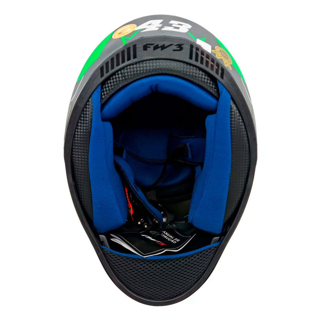 # Auto Equip # Seja bem-vindo(a)!!! --- Descrição Capacete Moto FW3 GTX 43 Com design esportivo e diferenciado, o capacete FW3 é perfeito para todos os motociclistas. Leve, estiloso e confortável, este moderno capacete vem com entrada e saída de ar, é fabricado em ABS super resistente e possui certificado de segurança. O melhor para você motociclista andar por aí com muita segurança, conforto e estilo! Capacetes da FW3 são projetados para lhe oferecer uma experiência inesquecível em cada um dos seus trajetos. Seus capacetes possuem uma estrutura compacta que se adapta perfeitamente ao condutor, preservando ao máximo sua segurança e garantindo trajetos confortáveis e divertidos. Especificações Técnicas: - Modelo: GTX 43; - Casco em ABS; - Viseira Transparente de Policarbonato 2,0mm Podendo ser Removida; - Forração em Camurça Jet Black 6 mm (Removível); - Entrada e Saída de Ar no Casco; - Reparo com Trava de Viseira; - Selo Inmetro; - Óculos Interno Fumê contra Raios UV. * ESCOLHA O TAMANHO ANTES DE EFETUAR O PAGAMENTO ** VERIFIQUE A CIRCUNFERÊNCIA DA CABEÇA ANTES DE EFETUAR A COMPRA Conteúdo da Embalagem: - 01 Capacete FW3 GTX 43 Importante - Garantia de 03 meses; - Pedidos aprovados até 12h00 de segunda a sexta será enviada no mesmo dia; - Enviamos em até 24h úteis; - Utilize o campo de "Perguntas e respostas" e esclareça suas dúvidas com nosso suporte técnico.