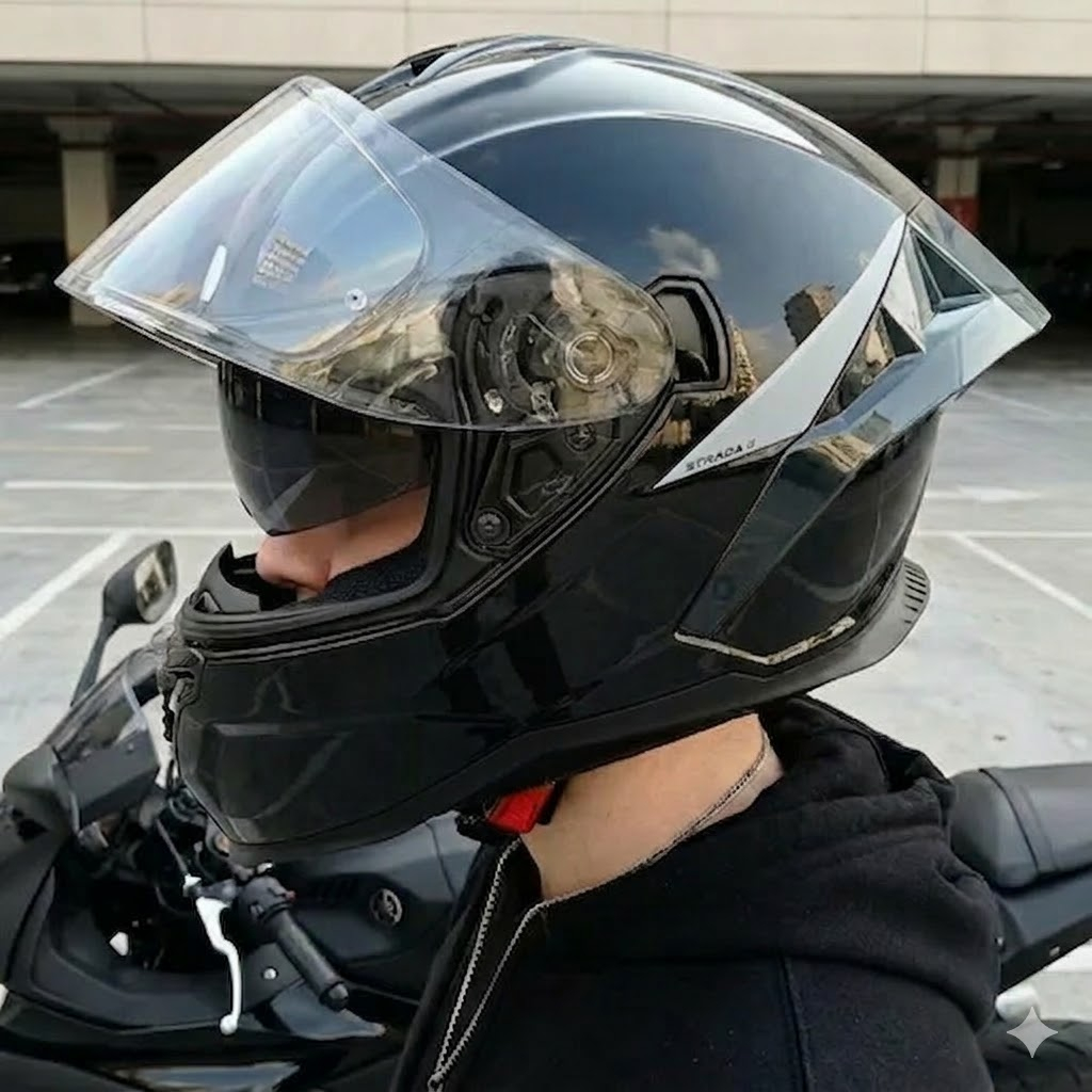 🏍️ Capacete Norisk Strada 2 Preto Brilho Fechado com Óculos Solar Interno O Norisk Strada 2 Preto Brilho é um capacete integral (fechado) desenvolvido para oferecer segurança, conforto e visual moderno para o uso diário e viagens. Fabricado em ABS de alta resistência, ele garante proteção eficiente e ótima estabilidade, além de contar com design aerodinâmico e acabamento brilhante, deixando o visual da moto muito mais elegante. Equipado com óculos solar interno fumê com proteção UV, permite pilotar com mais conforto em dias de sol, sem precisar trocar a viseira. 🛡️ Características do Capacete ✔ Modelo: Norisk Strada 2 ✔ Tipo: Capacete fechado / integral ✔ Cor: Preto Brilho ✔ Material: ABS de alta resistência ✔ Óculos interno fumê com proteção UV ✔ Viseira em policarbonato com ampla visão ✔ Sistema de ventilação eficiente ✔ Forração removível, lavável e antialérgica ✔ Fecho micrométrico prático e seguro ✔ Preparado para Pinlock (antiembaçante) 😎 Diferenciais ✅ Óculos solar interno integrado ✅ Visual moderno em preto brilho ✅ Excelente conforto para uso prolongado ✅ Boa ventilação interna ✅ Ótimo custo-benefício dentro da categoria 📦 O que você recebe ✔ 01 Capacete Norisk Strada 2 Preto Brilho ✔ Produto novo e original 🛒 Compre com segurança ✔ Produto original com Nota Fiscal ✔ Envio rápido e seguro ✔ Produto novo e lacrado ✔ Garantia de fábrica