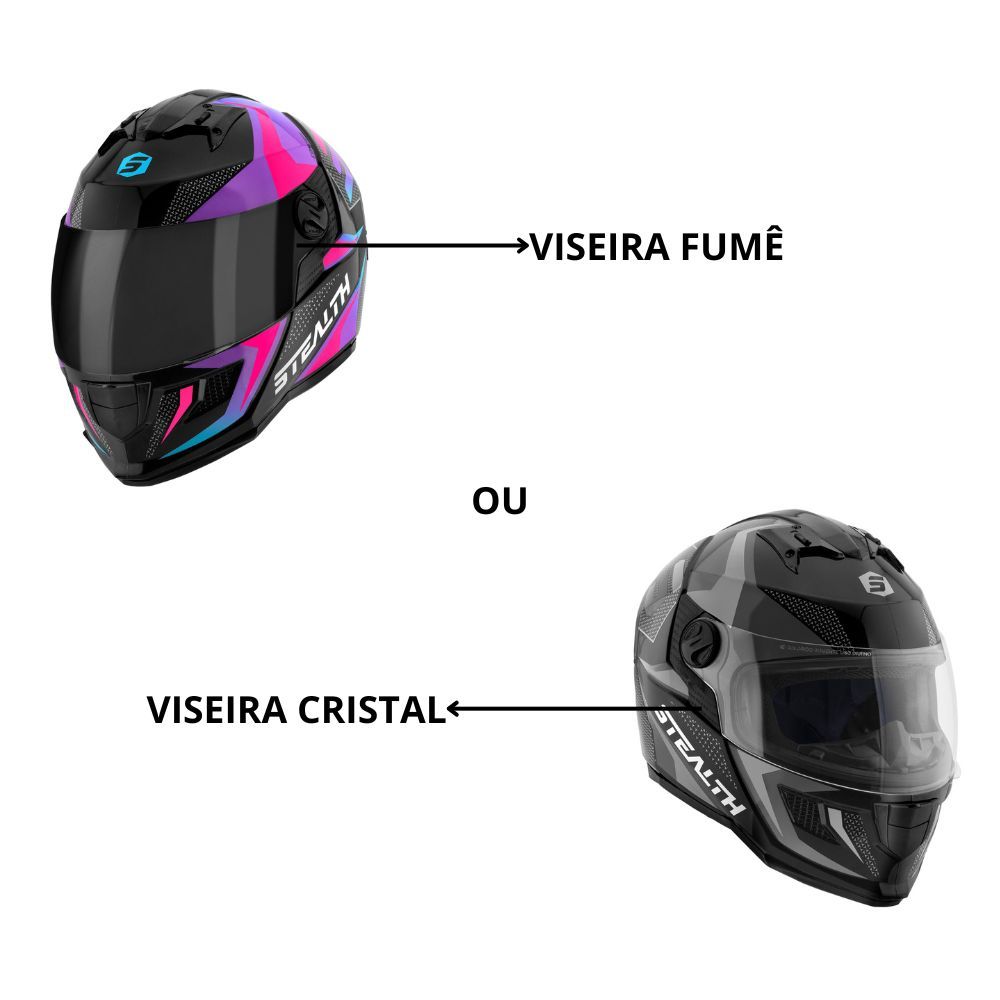Capacete Moto Stealth Concept Feminino Masculino Fechado Pro Tork Brilhante Viseira Cristal ou Fumê