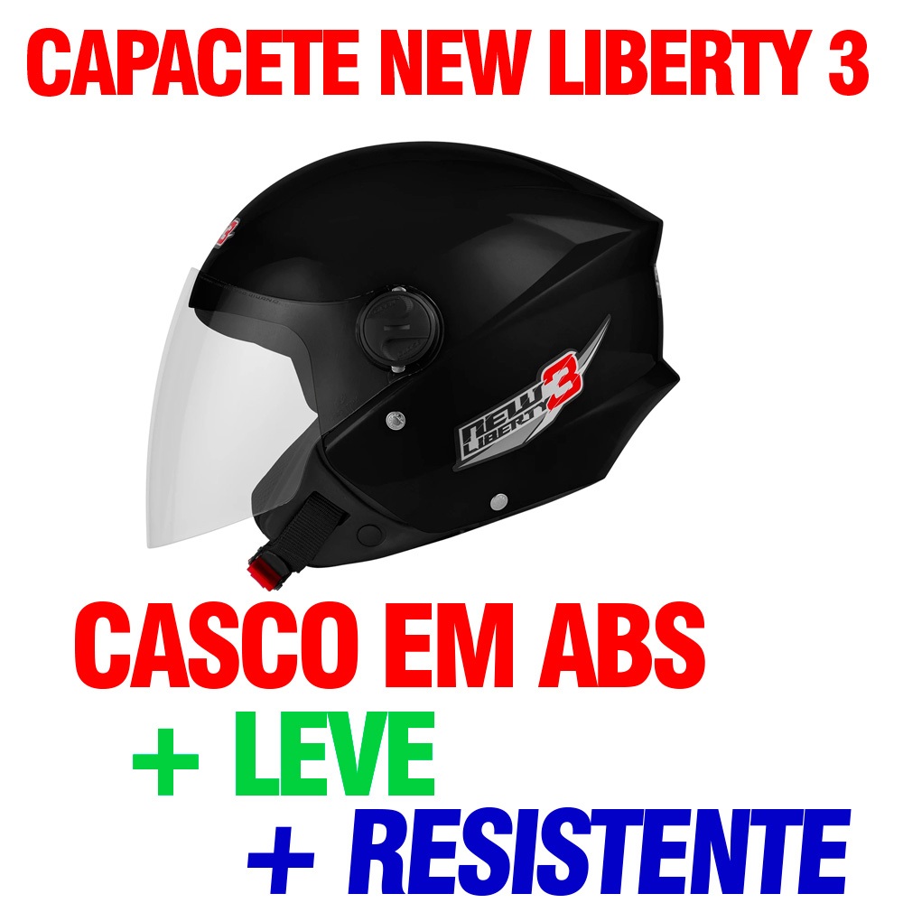 Capacete New Liberty 3 PRO TORK ABERTO MASCULINO E FEMININO SELO DETRAN CONFORTAVEL VISEIRA 2MM