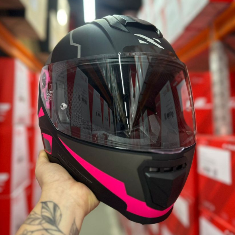 CAPACETE NORISK FEMININO RAZOR FULL ORIGINAL PRETO/ROSA + VISEIRA CRISTAL + SUPER BRINDE