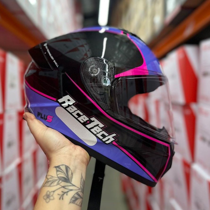 CAPACETE RACE TECH SUPER OFERTA EXCLUSIVO HIT PLUS PRETO/ROXO + VISEIRA CRISTAL + BRINDE TOP