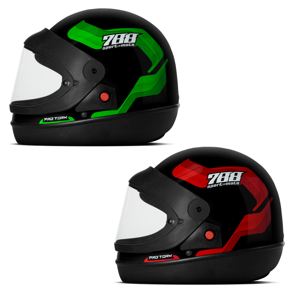 Capacetes De Moto Kit 2 unidades Pro Tork Sport Moto 788 Viseira Cristal Móvel
