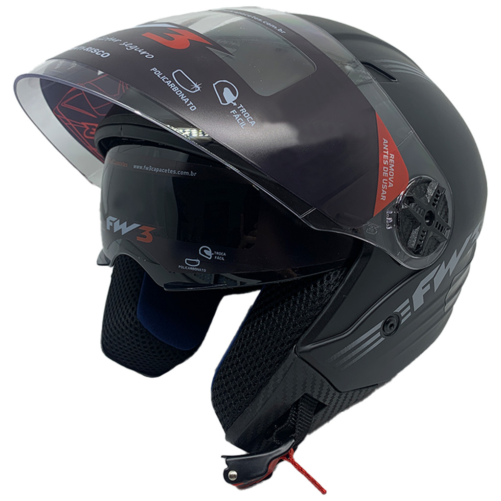 Capacetes Fw3 X Open Up Limited Preto Fosco Aberto Todos Tamanhos 56/58/60