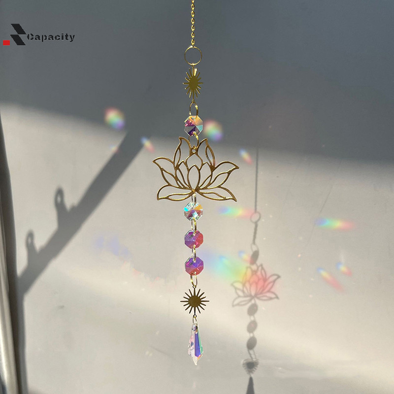 Capacidade 1Pc Suncatcher Jardinagem Artesanato Lótus Dourado AB Colorido Gota De Água Pingente Decoração De Cristal Par