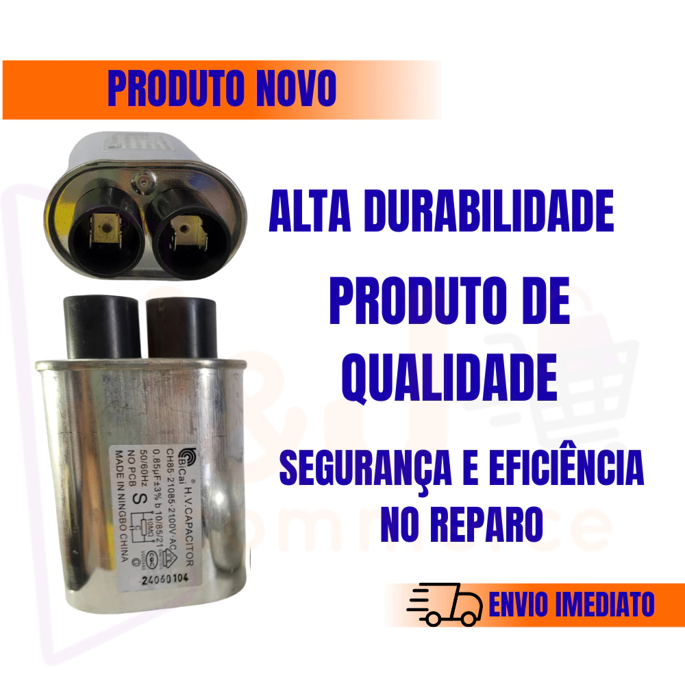Se o seu micro-ondas liga normalmente, mas não realiza o aquecimento, o defeito pode estar no capacitor de alta tensão. O Capacitor Alta Tensão 2100V BICAI é um componente essencial do circuito de geração de micro-ondas, responsável pelo armazenamento e descarga de energia para alimentação do magnetron. Disponível nas seguintes capacitâncias: 0,70uF, 0,75uF, 0,80uF, 0,85uF e 0,90uF. A escolha correta da capacitância é fundamental para garantir o funcionamento adequado do sistema de alta tensão. Utilize sempre a mesma especificação (uF) indicada no capacitor original do seu aparelho. Capacitores com capacitância incorreta podem comprometer o desempenho do aquecimento, gerar sobrecarga no circuito ou reduzir a eficiência do magnetron. Por isso, antes de finalizar a compra, verifique atentamente a etiqueta técnica da peça original instalada no seu micro-ondas. ⚠️ Atenção: trata-se de componente de alta tensão (2100V). A instalação deve ser realizada por técnico qualificado, pois o capacitor pode armazenar carga elétrica mesmo após o aparelho desligado. Se você busca capacitor alta tensão 2100V 0,70uF, 0,75uF, 0,80uF, 0,85uF ou 0,90uF para micro-ondas, peça técnica para conserto ou reposição do circuito de alta tensão, este modelo oferece confiabilidade, precisão e excelente custo-benefício. Agradecemos a preferência! J&J e-commerce Oficial