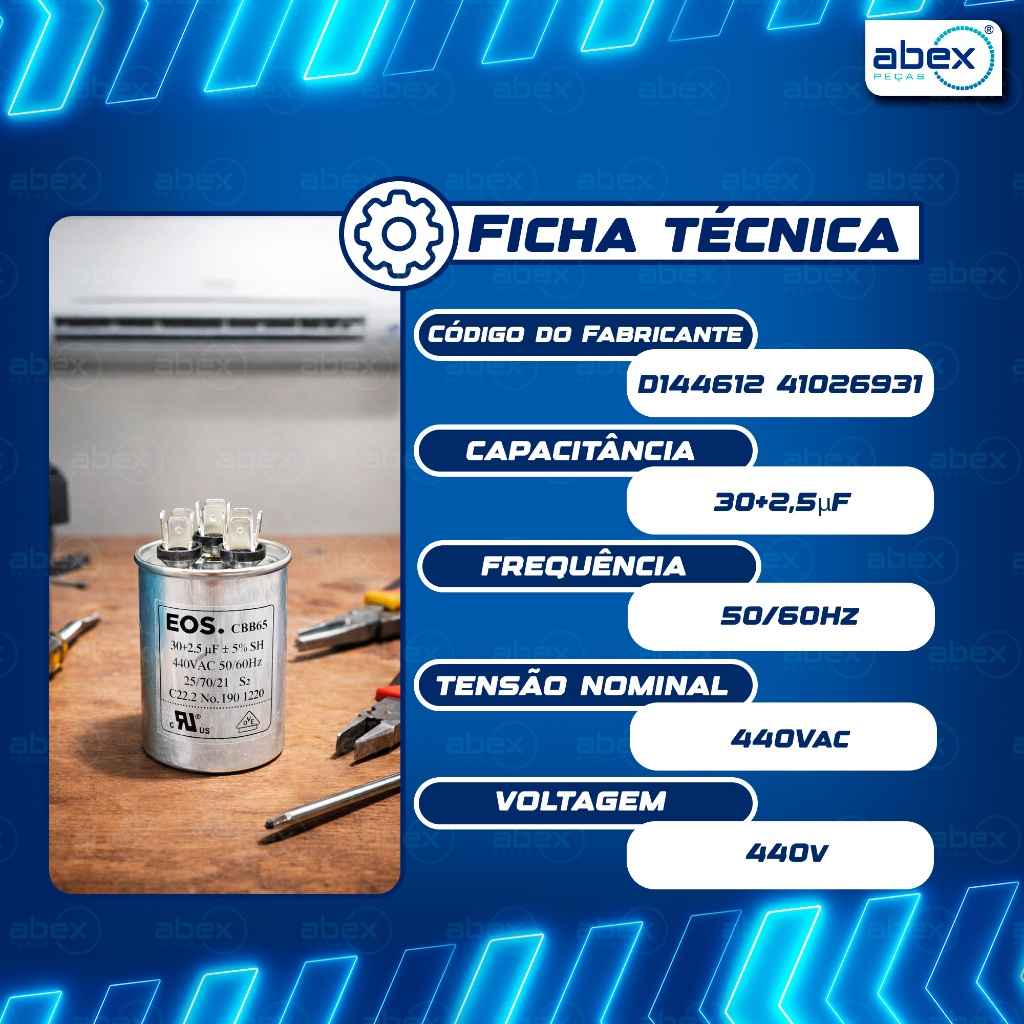 Capacitor Duplo Ar Condicionado 30+2,5uf CBB65 EOS Original