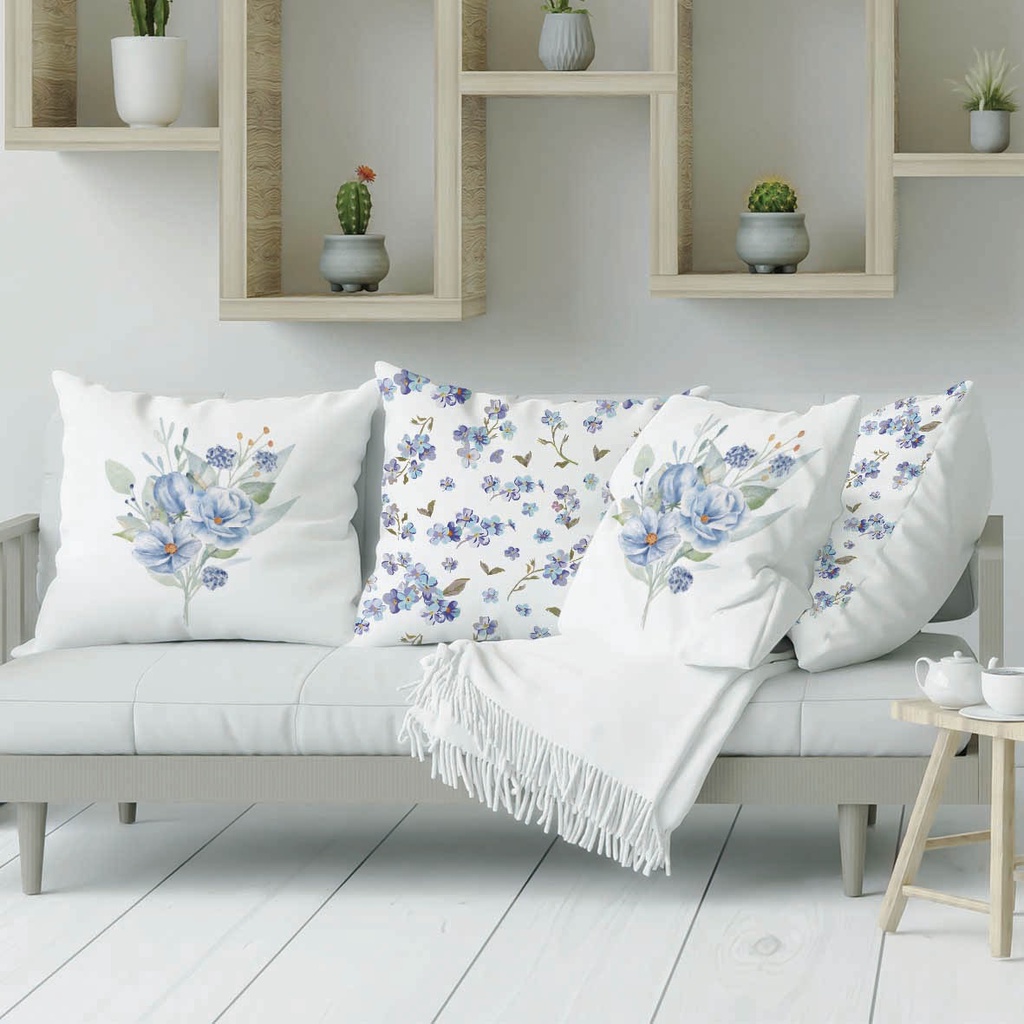 Capas De Almofadas Decorativas Kit Azul Florida 100% Algodão