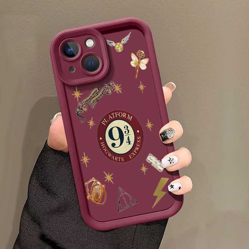 Capinha Capa Branca com Design de Ícones do Harry Potter Para iPhone 11 14 15 16 12 17 13 pro max 7/8 plus